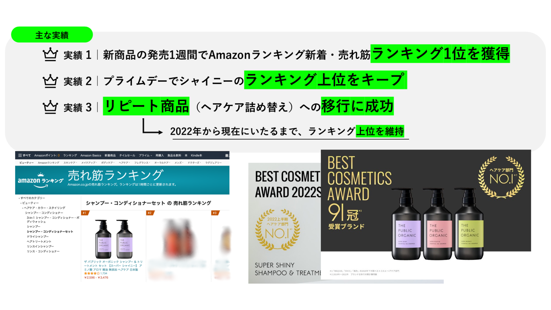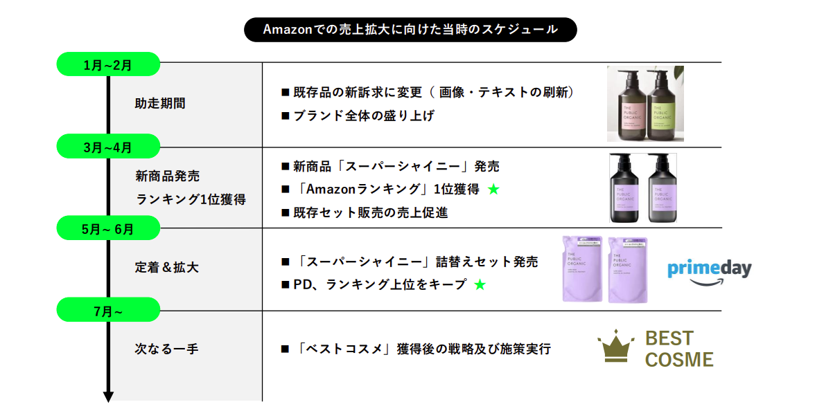 その後のプライムデーでも上位をキープできましたし、リピート商品(詰め替え)へのお客様の移行にも成功しました。
