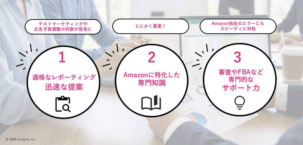 アグザルファ様とは事前にお打ち合わせを何度も重ねさせていただいたのですが、やはりAmazon専門の代理店様ということで、専門知識が非常に豊富であること。そしてコンサルタントの方ともお話をさせていただく中で、運用のフォロー体制が非常にしっかりしていると感じました。