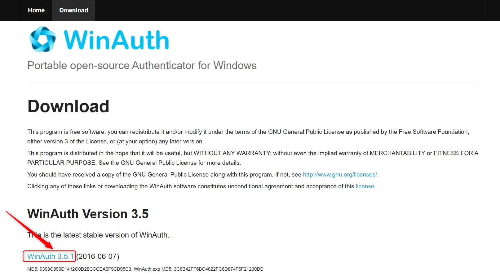 1.こちらのページにアクセスいただき、「WinAuth 3.5.1」をクリックする。