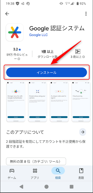 2.「インストール」をタップする。