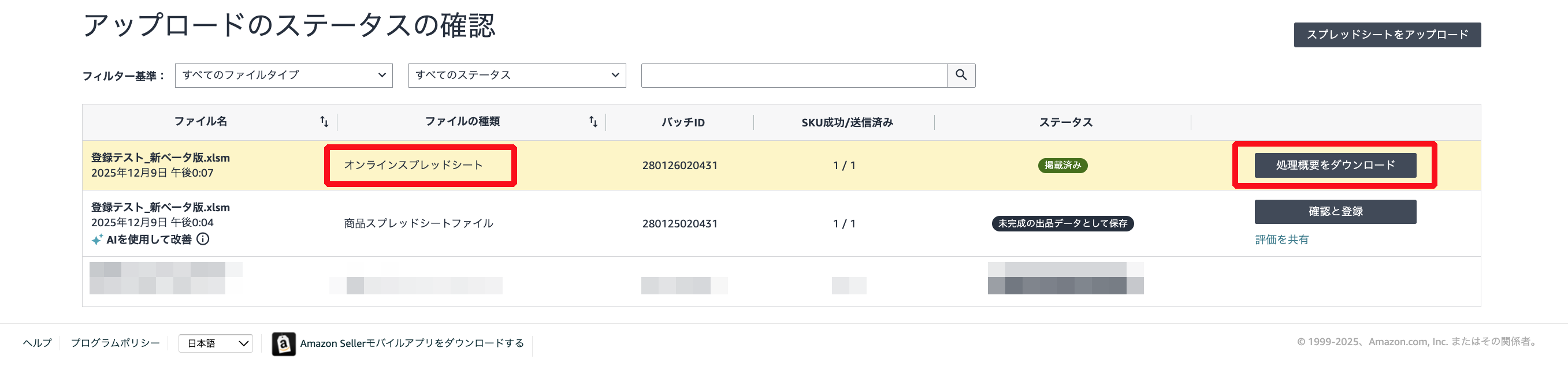 そのため、通常の一括アップロードとは違い、最低でも2回アップロードのステータスの確認が必要となります。