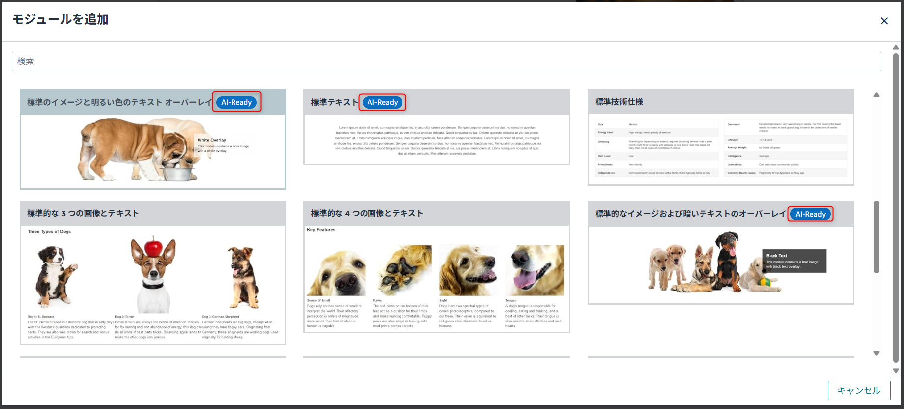対象モジュールには目印として青色の「AI Readyバッジ」が表示されています。