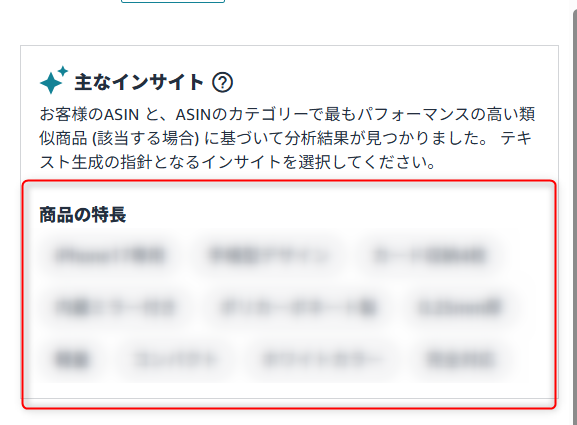 ASINを入力すると、自動的に「商品の特徴」がいくつかリストアップされます。