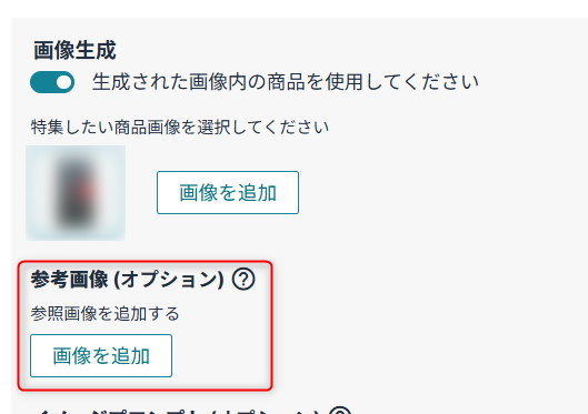 「参考画像(オプション) 画像の追加」から、画像をアップロードできます。