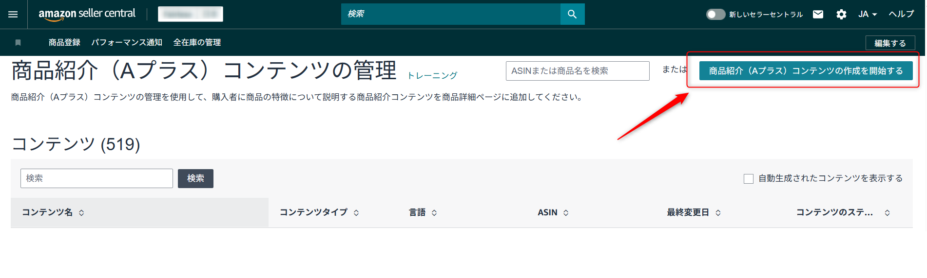 ステップ1:商品紹介コンテンツ(A+/Aプラス)の管理画面へ移動