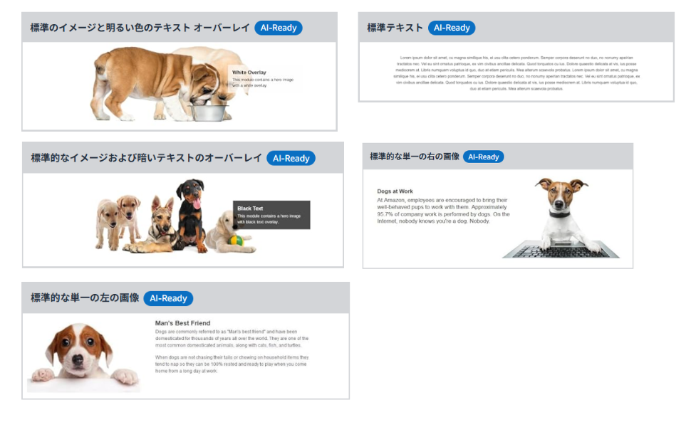 モジュールとは、画像とテキストが様々な形式で組み合わさったテンプレートのことです。