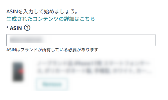 作成したい商品のASINを入力します。
