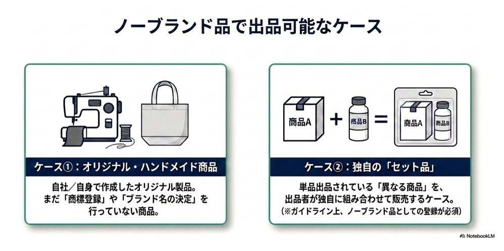 前項では、ノーブランド品で出品が可能なケースを解説しました。