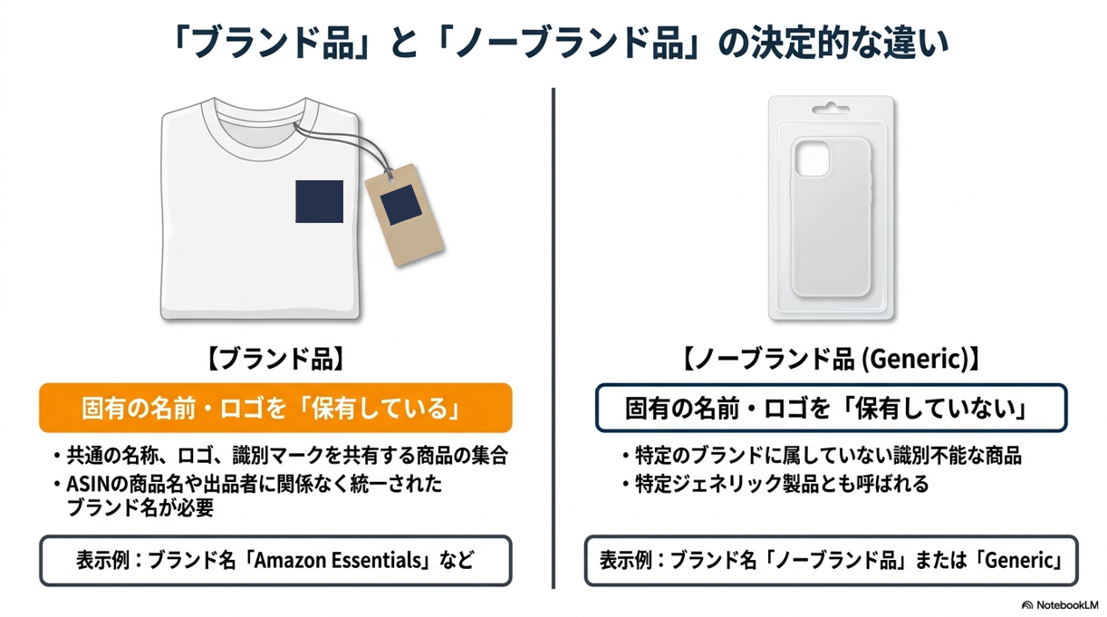 これらは、どのブランドにも所属しない、特定のブランド名を保持していない商品」を指し、Amazon上では「ノーブランド品」「Generic」として出品することが可能です。
