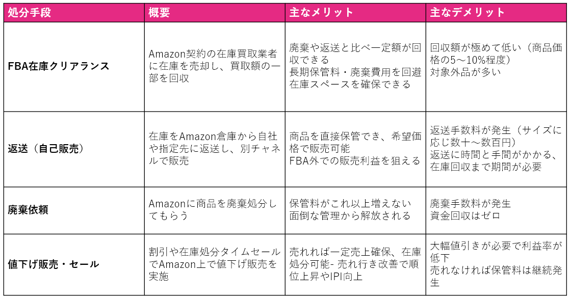 FBA在庫クリアランスプログラムと他の処分手段との比較〜主なメリット・デメリット
