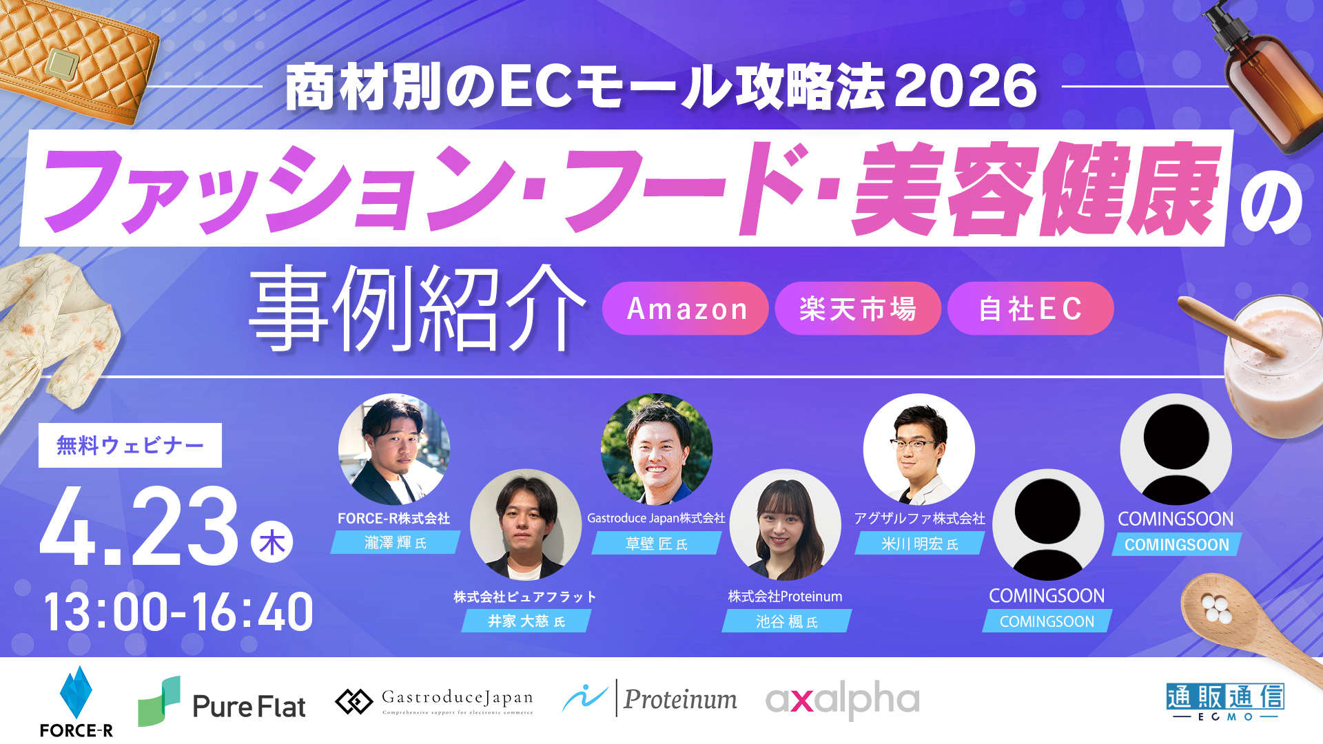 単なる「理論紹介」にとどまらず、「Amazon・楽天・自社EC」ならびに「ファッション・フード・美容健康」という商材・チャネルの多角的な視点から、他社事例を交えた具体的な成功シナリオを提示することで 、2026年の飛躍に向けた本質的な成長(脱イベントと売上最大化)を目指す内容となっています。
